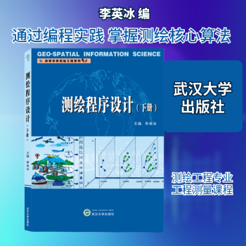 图书简介 | | 本书共分为5篇,分为上下两册,本书是下册,全书分为第3篇进阶篇、第4篇竞赛篇和第5篇创新篇,共40章。选题内容包含卫星定位、地理信息、摄影测量、工程测量、大地测量、测量平差、地图制图等测绘相关课程的知识点或者运算方法的编程,并且在GitHub上给出了参考源程序。 |