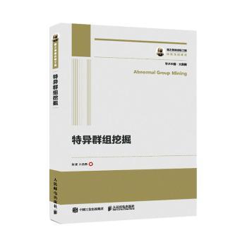 图书简介 | | 本书系统地阐述了特异群组挖掘任务,包括介绍了特异群组挖掘的概念,分析了特异群组挖掘任务与聚类、异常等任务之间的差异,给出了特异群组挖掘任务的相关算法,并且列举了特异群组挖掘的几个重点应用。 |