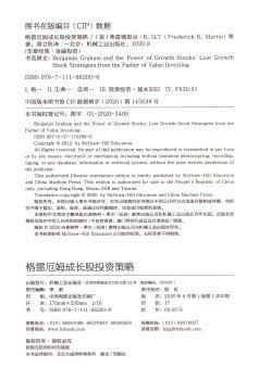 图书简介 | | 本书再现了格雷厄姆的估值模型:公司当下的每股内在价值=(8.5+2×增长率)×每股收益。全书还提出了另外一个常常被投资者忽略的问题:为自己的投资设定一个最低预期收益率。根据未来7年的内在价值评估,投资者可以推导出这只股票的最高买入价。 |
