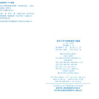 图书简介 | | 本书是《画法几何与阴影透视》的配套习题集,包括投影基本概念,点、直线、平面的投影,直线、平面间相对位置综合分析,投影变换,平面立体的投影,曲线与曲面的投影,曲面体的投影,轴测投影,形体的阴和影,透视投影。 |