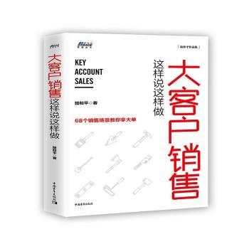 图书简介 | | 本书没有太多涉及营销概念和方法论,而是以大客户销售活动的十大模块(初次见面、建立关系、客户需求、沟通技巧、呈现方案、异议处理、竞争策略、谈判技巧、最后成交、销售心态)68个典型销售场景,细化到如何应对的方法和具体的话术,最后拿下订单的过程。68篇短小精悍的文章适合碎片化学习的特点,使销售人员可以正向完整阅读,也可以带着问题在书中具体模块的销售场景下反向寻找答案。 |