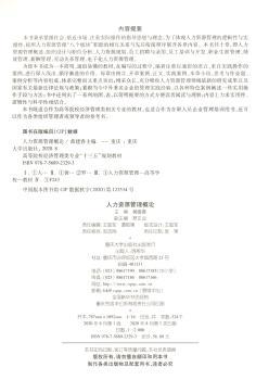 图书简介 | | 本书内容包括:人力资源管理概述、组织设计与职位分析、人力资源规划、员工招聘与录用、员工培训与开发、职业生涯管理、绩效管理、薪酬管理、劳动关系管理、电子化人力资源管理。 |