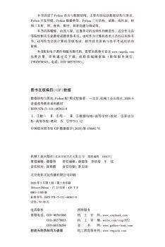 图书简介 | | 本书讲述了Python语言与数据结构,具体章节包括数据结构与算法、Python数据类型、Python数据类型、Python三大结构、函数、线性表、树和二叉树、图、查找、排序、异常处理与调试等。 |