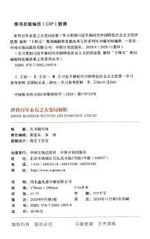 图书简介 | 本书分六章对世界百年未有之大变局进行初析。第一章阐述了习近平总书记关于世界百年未有之大变局重要论断的重要意义。第二章分析了大变局下世界发展的主要趋势。第三章研判了大变局下世界发展的不稳定性和不确定性。第四章分析了新冠肺炎疫情对大变局的影响。第五章分析了大变局下我国发展面临的机遇和挑战。第六章提出了应对世界百年未有之大变局,推动构建人类命运共同体。 |