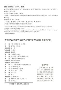 图书简介 | | 本书内容介绍了“+1”教学法是美国备受欢迎的项目式学习全新教学法。本书以跨学科为背景,结合21世纪信息技术,以培养学生核心素养为目的,提供了具体实施步骤——开展跨学科项目式学习的计划(可参考的标准、项目主题、学生需要掌握的概念等)、管理(如何确定目标、怎样进行、如何管理等)、评估(学生成果展示、学生项目评价)。 |