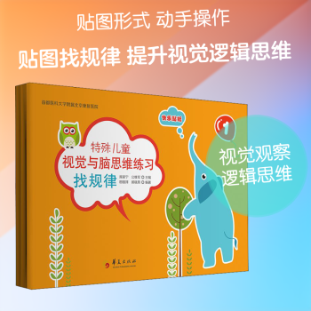 图书简介 | | 本套书根据儿童认知发展规律及特殊儿童的特点设计,涉及儿童感觉与知觉、观察与注意、分类与排及数学思维等方面的内容,信息量极大。练习册以贴图的形式展现,可操作性极强,非常方便儿童家长及专业教师根据儿童的具体情况来使用。“找规律”可以帮助儿童改善学习方式,提升儿童视觉观察、识别判断和逻车维等方面的能力。 |