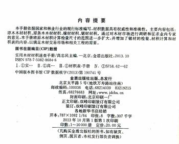 图书简介 | | 本手册依据国家和林业行业的现行标准编写,主要内容包括:原木木材材积、原条木木材材积、锯材材积等。通过对木材市场进行调查和征求业内专家的意见,该手册将原木材积计算检量尺寸的范围进一步扩大,并增加了锯材的检量、材积计算和材积表的内容,以满足木材交易市场和相关工程的需要。 |