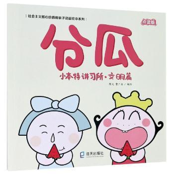 图书简介 | 本系列共12册,分别以“富强、民主、文明、和谐、自由、平等、公正、法治、爱国、敬业、诚信、友善”为主题,讲述小本特和卷卷、小丫丫等小伙伴之间的趣事,以及他们在学习与生活中遇到的难题。本册为《文明篇 分瓜》。 |