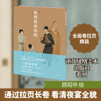 图书简介 | | 《韩熙载夜宴图》描绘了官员韩熙载夜宴载歌行乐的场面。此画绘写的就是一次完整的韩府夜宴过程,即琵琶演奏、观舞、宴间休息、清吹、欢送宾客五段场景。作品以全画卷拉页形式呈现,其中包含绘画主图、各个时代藏家的题跋、钤印等;拉页背面主要阐述作品的成画原因与时代背景、画作与画中主要人物的命运,题跋释文、绘画风格、作品意义等内容。 |