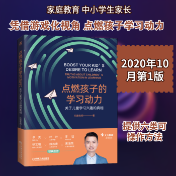 图书简介 | | 本书主要围绕“如何激发孩子的学习动力,重新点燃孩子的学习兴趣”这个话题,从儿童发展心理学的角度,提出了重建孩子的“学习动力脑”,即通过营造饥饿感、科学设计目标和计划、培养成长型思维、改变奖励方式、善用团体动力以及了解学习风格的方式,为父母展示了孩子学习兴趣的真相,同时提供了点燃孩子学习动力的方法。掌握了这些理念方法,父母会发现让孩子爱上学习并不难! |