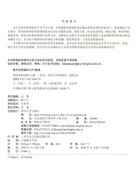 图书简介 | | 本书系统地介绍了财务管理的基本理论、基本方法和基本技能,以财务管理的各个环节为主线,在阐述财务管理的基本概念和基本理论的基础上,着重阐述了资本成本、资本结构等财务管理的基本知识以及筹资决策、投资决策、营运资金管理、利润分配、税务管理、预算管理、财务分析和评价的内容和方法,为财会以及相关专业的本科生提供了必备的财务理论知识和实务操作方法。 |