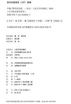 图书简介 | 本书以朱熹《四书集成》中的《中庸章句》为底本,文字、章节一体遵依《章句》。《中庸》最早是收在《小戴礼记》中的一篇文章,是儒家重要的经典著作,也是其理论的渊薮。尤其自宋以后,《中庸》成为儒学特别是理学研读的重点,理学许多概念命题皆出于此。《中庸》的许多精辟见解、思想精髓,至今依然在人们心中闪烁着不朽的价值光芒。 |