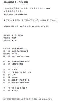 图书简介 | 本书以朱熹《四书集成》中的《大学章句》为底本,文字、章节一体遵依《章句》。《大学》原是《礼记》中的一篇。《大学》所讲的“三纲领”:明明德、新民、止于至善,“八条目”:格物、致知、诚意、正心、修身、齐家、治国、平天下,把中国学术思想重要之点全囊括其中。在短短的一千三百余字里扼要地说清了中国文化的最高信仰和终极理想。 |