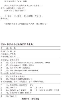 图书简介 | | 本书主要内容包括:生意经营的逻辑图谱、小店业务员在生意中的作用与任务、小店业务员的工作目标与职责、预售作业与车销作业的发展史、预售与车销小店业务的发展历程、小店业务员作业基础技能、小店业务员作业必备技能等。 |