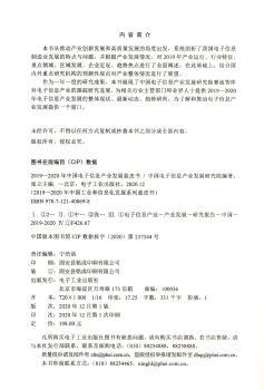 图书简介 | | 本书分综合篇、行业篇、领域篇、区域篇、企业篇、政策篇、热点篇、展望篇共八篇,主要内容包括:2019年全球电子信息产业发展状况;2019年中国电子信息产业发展状况等。 |