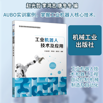 图书简介 | | 本书为理论与实用技术兼顾的工业机器人技术入门教材。全书共7章,包括工业机器人基础知识、组成与性能、核心部件、运动学、轨迹规划、编程语言及编程开发。理论内容循序渐进,书中第2章到第7章的实训或案例以AUBO机器人为例,力图使读者全面掌握工业机器人的结构原理、特点、控制方法、核心技术和开发应用,书中的例题和习题为学生提供理解和巩固的途径,注重培养学习者的实践技能及应用能力。 |