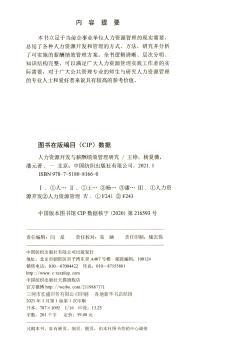 图书简介 | | 本书分八章,内容包括:人力资源管理概述;人力资源开发与管理的基本原理;人力资源开发技术;人力资源开发途径探究;人力资源管理之薪酬管理等。 |