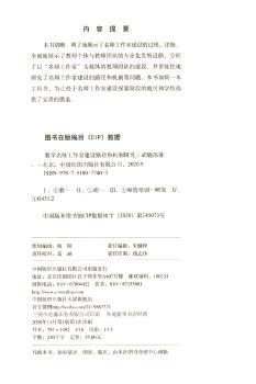 图书简介 | | 本书主要探讨了教师的发展道路以及在新的背景下如何审视名师工作室建设,也即名师工作室建设的逻辑起点问题。内容包括:教师发展的相关研究综述;建设学习型教师团队等。 |