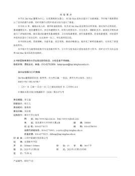 图书简介 | | 全书共11章,遵循由浅入深、循序渐进的思路,依次对3ds Max的发展及应用领域、相互协作应用软件、基础建模技术、复杂建模技术、多边形建模技术、材质与贴图技术、灯光技术、摄影机技术、渲染技术等知识进行了详细的讲解。最后通过创建常见基础模型、卫生间场景模型、客厅场景模型、卧室场景模型,对前面所学的知识进行了综合应用,以达到举一反三、学以致用的目的。 |