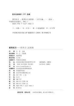 图书简介 | 本书精选了《教导有方》节目中的十几位专家关于教育问题的阐述,每期的话题更多的是讲述和人生及成长有关的事。有对孩子的陪伴、有面对挫折的态度、有如何培养孩子的学习力及情商、有如何成为一个赢在未来的人、有怎样才能不做分数的奴隶等。通过跨界名人对教育的理解,剖析生活中常见的教育问题和现象,从自身的优势领域出发,为读者提出有效的教育对策。 |
