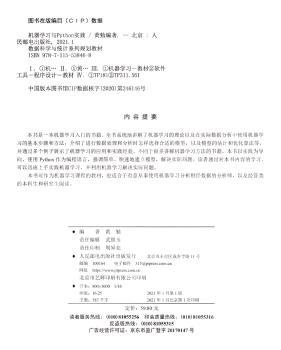 图书简介 | | 本书是一本机器学习入门的书籍。全书系统地讲解了机器学习的理论以及在实际数据分析中使用机器学习的基本步骤和方法:介绍了进行数据处理和分析时怎样选择合适的模型,以及模型的估计和优化算法等,并通过多个例子展示了机器学习的应用和实践经验。 |
