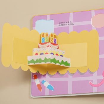 图书简介 | | 《我的生日派对》:今天是我的生日!我要举办一个最棒的生日派对。先来写一写卡片,邀请亲爱的小伙伴来参加我的生日派对,然后要把房间装饰好。过生日怎么能少了生日蛋糕呢?我还要亲手做一个世界上最美味的生日蛋糕!小朋友们都来了,点上蜡烛吧,闭上眼睛许个愿,我又长大一岁咯!书中设计了翻翻、推拉、旋转等游戏形式,也给孩子很多游戏中使用的小道具,让孩子在游戏中培养阅读兴趣。 |