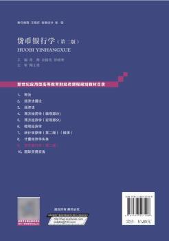 图书简介 | | 本书每章设有引导案例、延伸阅等栏目,附课后练习题。理论联系实际,选择了大量生动的实例,开阔学生视野,贴合当前经济、金融发展。注重金融知识更新与时效性,如互联网金融、数字货币、存款保险制度、人民币国际化等。 |