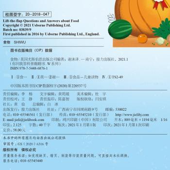 图书简介 | | 本书主要内容包括:哪里?食物是从哪里来的?、为什么?为什么鸡蛋是椭球形的?胡萝卜是橙色的?、是或不是?葡萄干是水果吗?、哪些?哪些食物来自海洋?、怎样?巧克力和面粉是怎样做成的?、什么?空间站里的航天员吃什么?等。 |