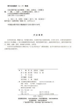 图书简介 | | 本书以C语言的基本语法、语句为基础,深入浅出地讲述了C语言程序设计的基本概念、设计思想与方法。本书文字严谨、流畅,例题丰富,注重程序设计技能的训练。全书共10章,主要内容包括程序设计基础及C语言概述、C语言的数据类型及运算、顺序结构程序设计、选择结构程序设计、循环结构程序设计、数组、函数、指针、结构体与共用体、文件。 |