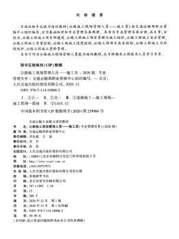 图书简介 | 本书为交通运输部职业资格中心组织编写的交通运输专业能力培训教材《公路施工现场管理人员——施工员》中的专业管理实务分册,共8章,分别为:公路工程施工项目部建设、公路工程施工项目管理与施工组织、公路工程施工安全管理、公路工程施工质量控制、公路工程施工进度控制、公路工程项目成本控制、公路工程施工环境保护、公路工程施工资料管理。 |
