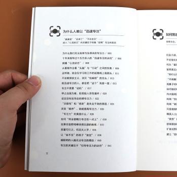 图书简介 | | 本书分四章,内容包括:为什么人难以“迅速专注”;如何营造自由发挥专注力的“超级放松状态”;伏案时迅速专注的技巧;从十年指导经验中总结的诀窍——如何延长“专注时间”。 |