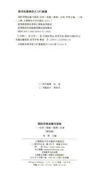 图书简介 | | 本书共分为两篇:上篇,国际货物运输;下篇,国际货物保险。涵盖12个项目、41项任务。内容包括:国际货物运输总论;国际海上货物运输;国际铁路货物运输等。 |