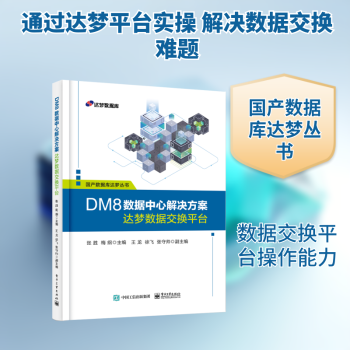 图书简介 | | 本书以达梦数据交换平台4.0为蓝本,全面系统地介绍了达梦数据交换平台体系结构、安装与配置、转换和作业流程的设计、达梦数据总线和集群等内容,是学习达梦数据交换平台的基础教材和参考用书。全书分为入门篇、基础篇和高级篇,涵盖达梦数据交换平台概述、安装与配置、快速入门、数据源管理、转换、作业、函数与变量、调度与监控、权限与版本管理、增量数据抽取、数据质量检测、web监控和数据总线等内容。 |