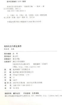 图书简介 | | 本书分九章,内容包括:绪论;商务着装礼仪;商务职场仪容礼仪;面部表情礼仪;举止行为礼仪;商务交往礼仪;商务会议礼仪;商务宴请礼仪;商务仪式礼仪。 |