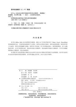 图书简介 | | 本书以Office 2016办公处理软件为载体,通过14个任务详细介绍了Word、Excel、PowerPoint的高级使用方法。主要内容包括制作个人简历、制作办公用品订购单、制作面试流程图、制作新年贺卡与标签、科普文章的编辑与排版、制作员工信息表、员工社保情况统计、制作销售图表、员工出勤情况分析、公司日常费用分析、事业单位演示文稿制作、创业案例介绍演示文稿制作、汽车行业数据图表演示文稿制作、展示动画制作。 |