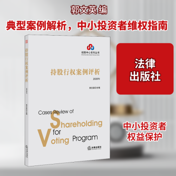 图书简介 | | 本书为中证中小投资者服务中心系列丛书之一,投服中心以中小投资者的根本利益诉求为出发点,围绕中小投资者利益痛点问题,示范引领广大中小投资者行使建议权、质询权、查阅权、表决权、诉讼权、股东大会召集权等股东权利,力促上市公司提升质量,回报投资者。 |