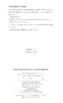 图书简介 | | 本书是罗默的《高级宏观经济学》第五版的各章习题的题解指南的翻译版,提供了除实证练习之外的各章习题的参考答案。题解指南提供了习题的详细解答过程,帮助题解指南的使用者正确地把握解题思路及技巧,掌握宏观经济理论的建模方法。 |