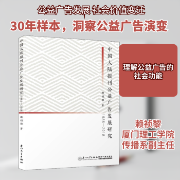 图书简介 | | 本书以1986-2017年刊登在《人民日报》《解放日报》和《厦门日报》这三份主要报刊上的公益广告为样本,运用定量和定性的方法,对中国大陆报刊公益广告进行深入研究。该书认为,大陆公益广告的发展迅猛,形式多样,已经是社会生活中非常重要的一种广告类型,极富中国特色,在进行传统价值宣讲和张扬公益方面,有其他类型广告不可替代的作用。 |
