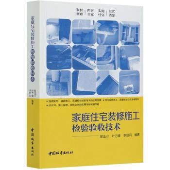 图书简介 | | 本书是一部比较系统、完整的介绍住宅基础知识、住宅装修施工技术、检验验收。基本上反映了购房和装修的当前最新技术和成果。家庭住宅买什么样的房?面积多大合适?装修选择什么样的材料合适?装修施工的质量如何?是非常重要的,是本书重点讨论的问题。为装修购房者提供参考意见。家庭住宅装修重点是材料质量和施工质量,检验验收是检查施工质量是否符合要求,本书给出了许多检验表格和实际检查的方法,供需要家庭住宅装修的读者参考、使用。本书基于住宅装修施工质量检验验收所需要的知识而展开的。本书面向住宅装修设计施工质量检验验收人员,是一本非常好的参考书。本书由3部分组成:住宅的知识基础;住宅装修设计施工质量检验验收技术;书房、收藏室装修设计、施工、质量检验验收技术。 |