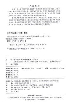图书简介 | | 全书共9章,主要包括四个部分:第一部分为外贸营销、商务往来以及商务合作形式,第二部分为业务洽谈、外贸协商以及商品报关,第三部分为外贸后续事项以及风险与纷争,第四部分为人际关系拓展相关内容。 |