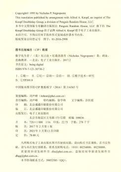 图书简介 | | 本书描绘了数字科技为我们的生活、工作、教育和娱乐带来的各种冲击和其中值得深思的问题,是跨入数字化新世界的最佳指南。 |