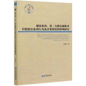 图书简介 | | 本书针对公司治理理论和实践广泛关注的控股股东私利行为问题,基于对媒体治理研究方法的改进,研究了媒体监督、第二大股东制衡对控股股东私利行为及企业价值的影响:采用规范研究方法,对媒体治理研究方法进行改进,以多角度全面、深入分析媒体对样本公司的监督水平;采用实证研究方法,收集了2006-2016年中国A股上市公司的15879个样本数据,对控股股东在私利行为上的方式选择问题、第二大股东制衡对控股股东私利行为及企业价值的影响问题进行了研究。 |