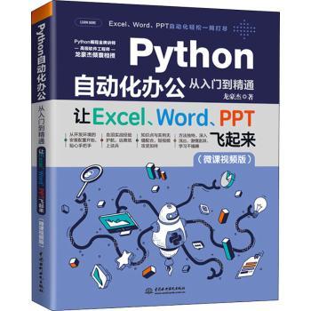 图书简介 | | 本书将易懂好学的Python编程语言,与当前使用最广泛的Office办公软件进行结合,旨在解决开发人员、职场人士在大批量、自动化处理表格数据、Word文档数据、PPT数据展示以及邮件的自动化处理、网页的自动化操作等方面的问题,通过Python编程实现自动化、智能化、高效化处理办公问题的目标,解放双手,提升工效。本书具备三大特点:覆盖面广,易学易懂,可操作性强,配视频辅导和案例演练。本书讲解Python自动化办公的知识技能覆盖面非常广,不仅仅融合了Excel办公软件,而且还融合了我们办公常用的Word办公软件、PPT办公软件、邮件的自动化处理、网页的自动化操作,而市面上我们看到的书籍仅对Excel办公软件进行了融合;书籍中也配套了微课视频讲解,学习过程中有不懂的地方,直接扫码观看视频即可,方便高效;书籍中在讲解Python自动化操作Office软件、邮箱、网页的时候,配备了相应的案例,这些案例使得我们能迅速达到学以致用的目的。 |