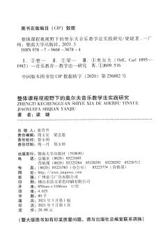 图书简介 | | 本书以整体课程观作为研究奥尔夫音乐教学法的切入点,借助整体课程观的理论研究奥尔夫音乐教育,论述二者之间的紧密联系,并选取典型的奥尔夫音乐教学实例进行多角度剖析。该书共分为五个部分:绪论;整体课程观与奥尔夫音乐教学法概述;整体课程观与埃尔夫音乐教学法的契合;奥尔夫音乐教学课例的整体课程审视;整体课程视野下的奥尔夫音乐教学法实践探索。 |