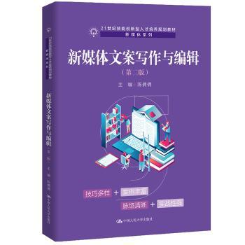 图书简介 | | 本教材根据新媒体文案岗位的能力要求,分九个项目深入浅出地阐述了新媒体文案写作与编辑的相关知识,内容涵盖新媒体文案概念解读、新媒体文案写作思维与写作技巧、新媒体文案写作实操等。除此之外,本书还收录了大量新媒体文案的优秀案例,使学生能够在阅读中开阔视野,提升新媒体文案写作与编辑技能。本教材学练结合特色明显,注重与职业标准紧密结合,突出体现了“以就业为导向,以能力为本位”的职业教育特点,可满足社会对高素质的实用型人才培养的需要。 |