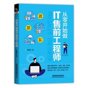 图书简介 | | 本书计划分为四大部分。第一部分主要是售前工程师的简介。第二部分主要是售前必备知识,主要是从业务、技术、产品三个角度描述,并会提供真实的售前小白知识积累历程案例。第三部分主要是售前基本技能,主要是从客户交流能力、方案编制能力、沟通协调能力,三大能力出发,对它们的子技能进行分解,比如客户交流,包括了解客户、理解客户需求,比如方案从售前需要掌握的四种方案类型来写,比如沟通协调能力,包括售前上下游配合岗位中的销售、上级领导、项目经理,并会提供真实的售前小白实战经验案例。第四部分主要是售前基本素质,主要是从售前需要掌握的工作软件以及个人职业修养,这两个方面介绍。 |
