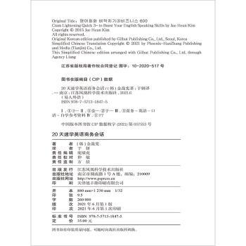 图书简介 | | 本套书采用了“做题10分钟,学习5分钟”的编排设计,通过思考“这句话用英语怎么说?”先刺激大脑,之后解决问题的过程能够帮助学习者加深记忆。本书是会话系列中的第三册,主要讲解商务英语会话。全书配有两种版本的MP3录音,每一课的后面都配有相应的听力练习、句子理解练习等。 |