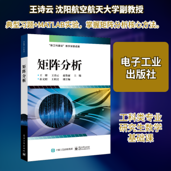 图书简介 | | “矩阵分析”也称“矩阵论”或“工程数学”,主要研究用矩阵理论和方法解决现代工程技术中出现的各种理论和计算上的问题。本书的内容主要包括线性空间和线性变换、內积空间、相似变换与约当标准形、矩阵分解、矩阵范数、矩阵函数、矩阵的广义逆、矩阵的特殊乘积内容。本书以线性代数理论作为基础知识展开,是线性代数到矩阵理论研究的桥梁,能满足研究生科研与工程实践的需要。各章配有习题,难度适中,并且本书最后一章为上机实验,介绍了矩阵分析的基本Matlab命令。 |