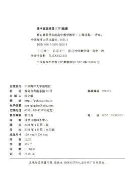 图书简介 | | 本书是一本在核心素养导向下的高中数学教学的实用性指南用书,内容主要包括教材解读、课堂教学设计、解题研究等。以理论与实践相结合的方式,以核心素养理念为先导,以丰富的教学案例为参考,详细地论述了高中数学教材的价值分析。课堂教学模式的介绍以及试题改编与原创等诸多教学研究环节,完整地呈现了高中数学教学的理念落地和学科核心素养培育的全过程。本书各章节中均有精彩丰富的案例,这些案例全部来自真实的课堂和教研,可为高中数学教师和教学研究者,尤其是刚踏入教学岗位的青年教师朋友们提供有益的借鉴。 |