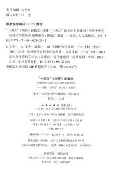 图书简介 | | 本书是中央党校经济学教研部组织编委会针对“十四五”新概念新提法的全新解读,是读懂“十四五”最新精神的权威阐释和专业解读。其中共梳理了100个关键词,如对新“四个全面”战略布局、统筹“两个大局”、中国经济发展韧性、高质量发展、创新联合体、产业链现代化、中国特色社会主义乡村振兴道路等新概念进行了深入浅出的解读,每个概念1000字左右,围绕概念“是什么、为什么、怎么办”等基本内涵进行阐释。 |